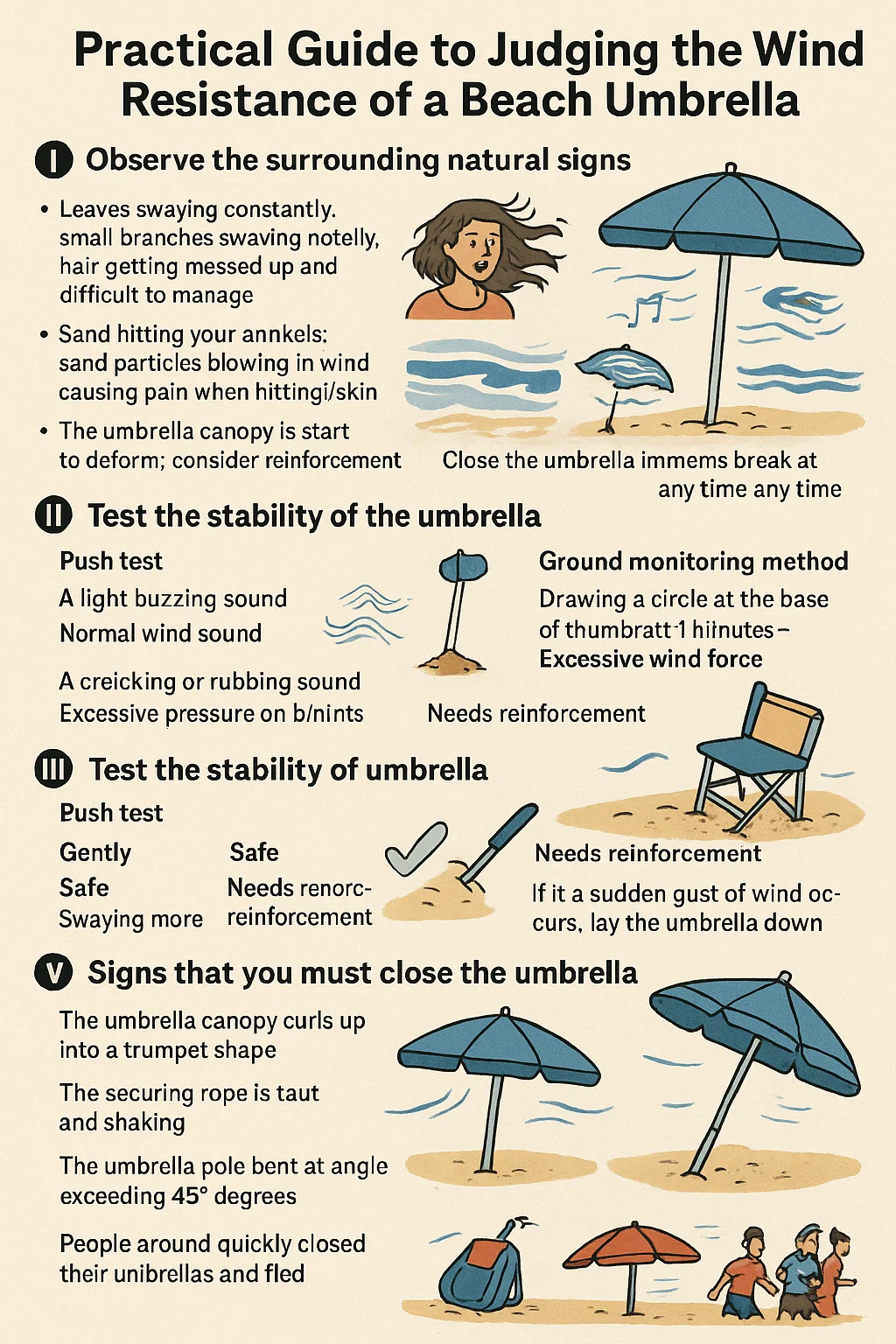 فيما يلي دليل عملي للحكم على مقاومة الرياح لـ أ مظلة الشاطئ :