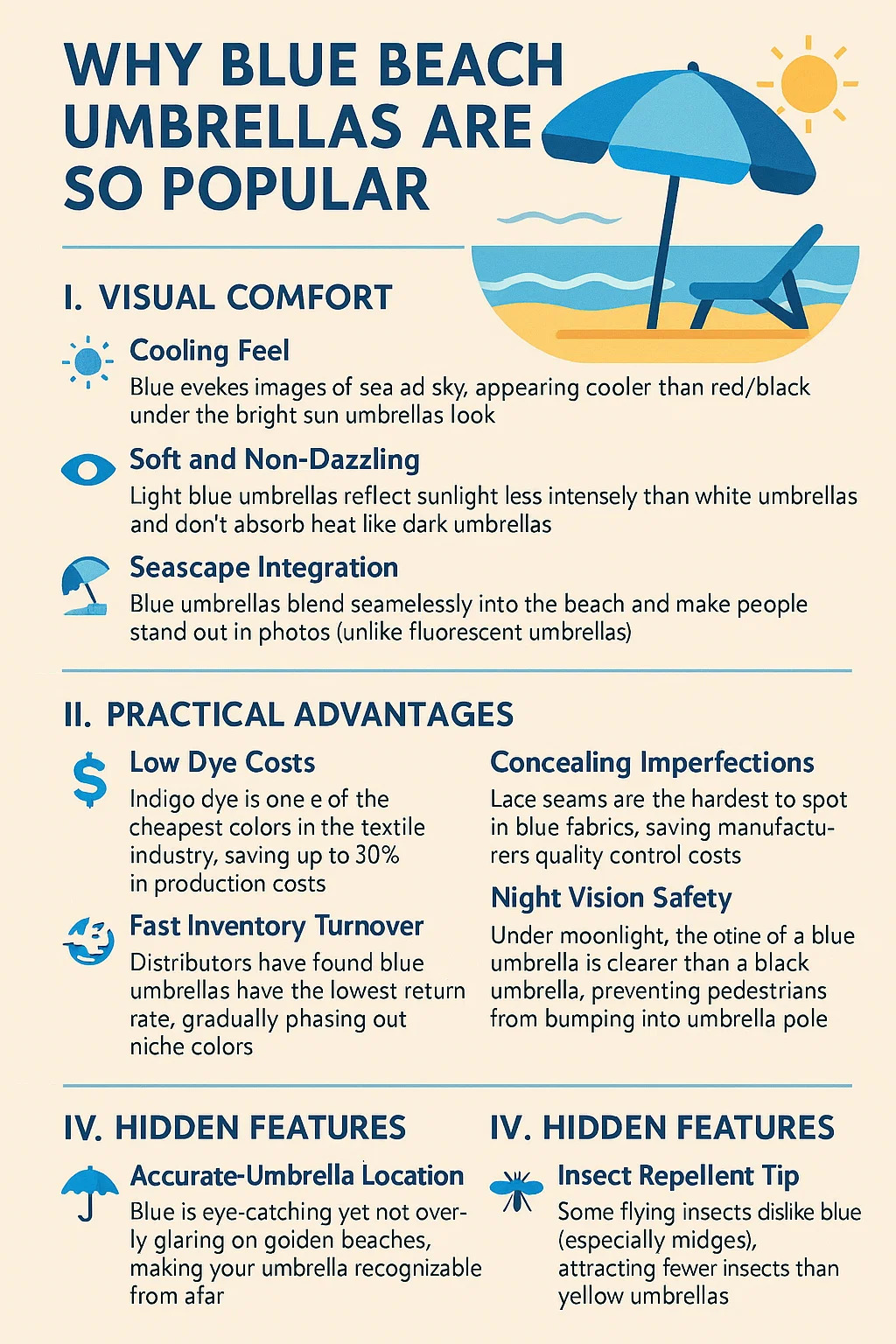 فيما يلي تحليل لسبب شهرة اللون الأزرق مظلات الشاطئ :
